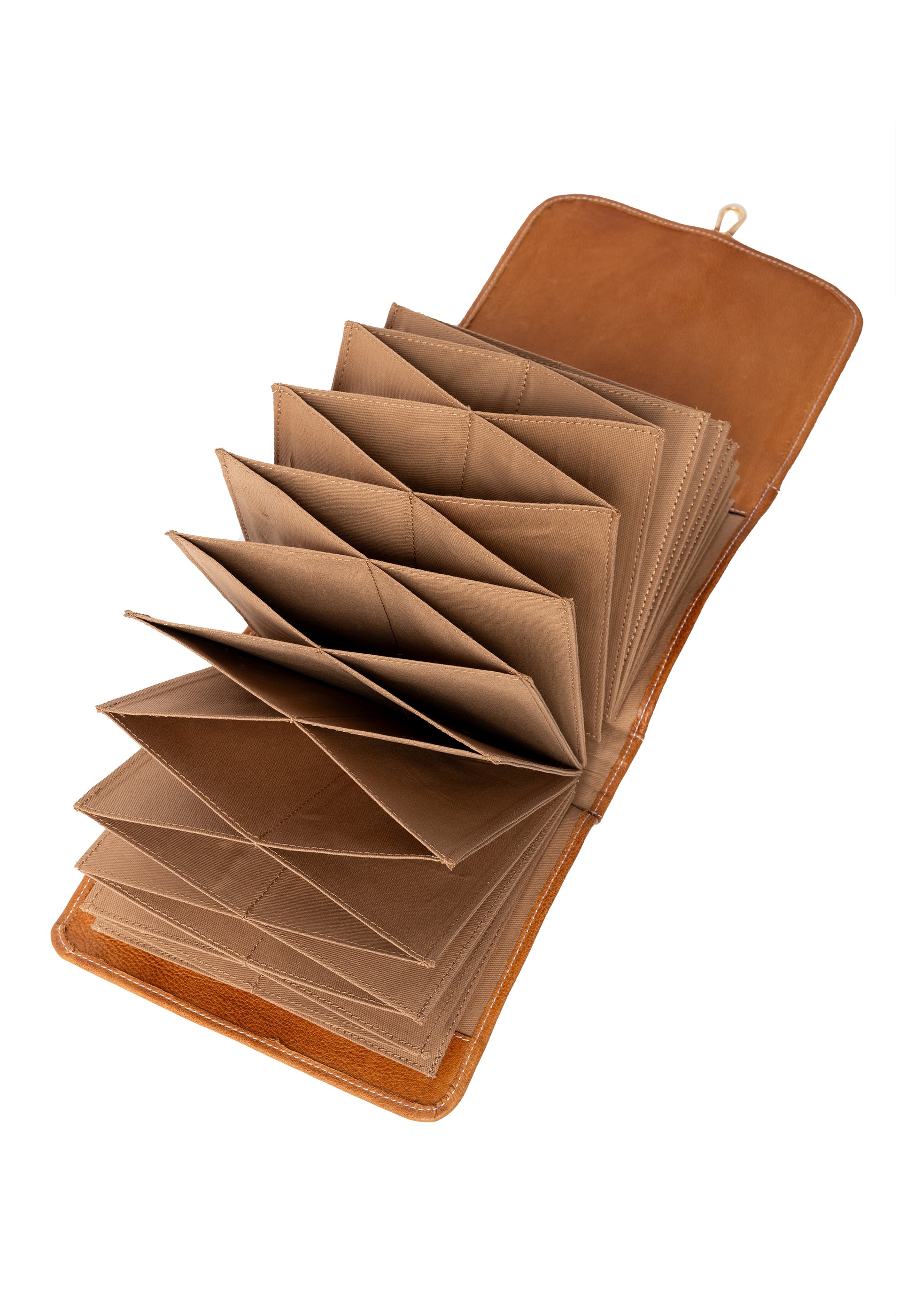 Denne smukke opbevaringstaske passer perfekt til dine faste rundpinde. Den er fremstillet i super lækkert læder. Den har to forskellige lukke indstillinger så den også kan holdes lukket når den er fuld. Absolut luksus opbevaring til dine pinde.