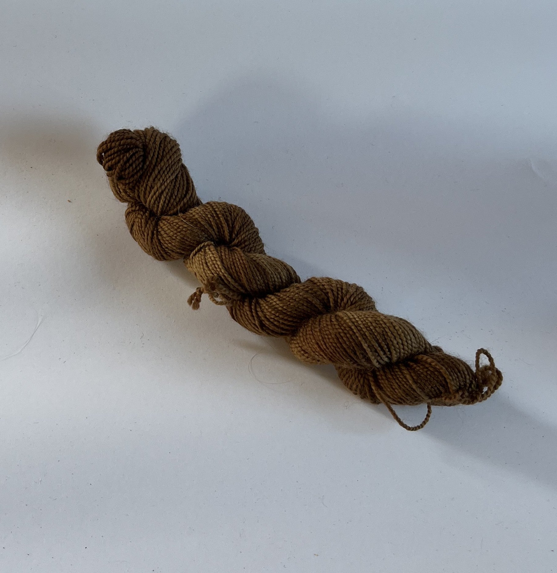 Denne smukke brune farve er lavet med valnøddeskaller. Garnet er vores bløde strømpegarn i 20 g fed. Feddet er perfekt til hæl og tå i et par strømper eller måske til mønster.