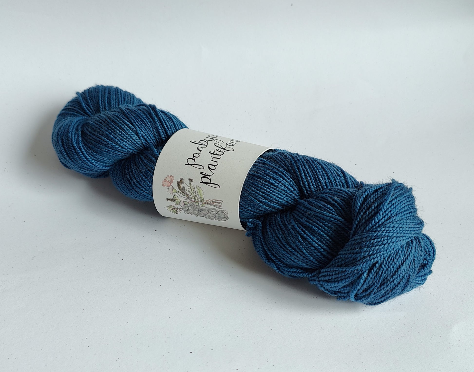 Denne smukke blå farve har vi lavet med indigo. Den er her farvet op på vores super lækre merino strømpegarn som indeholder 20% nylon for at tilføje styrke så de kan holde til at blive brugt. Garnet er blødt og lækkert og kan vaskes i maskinen.